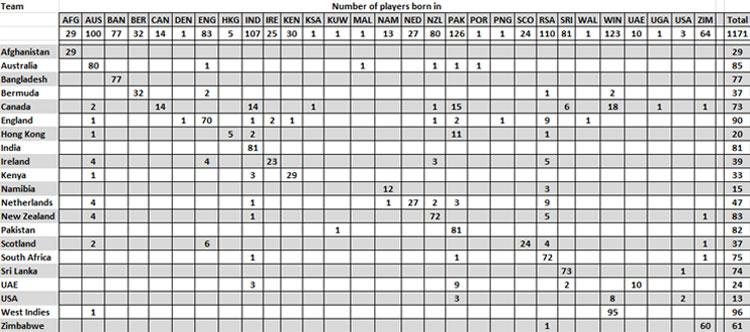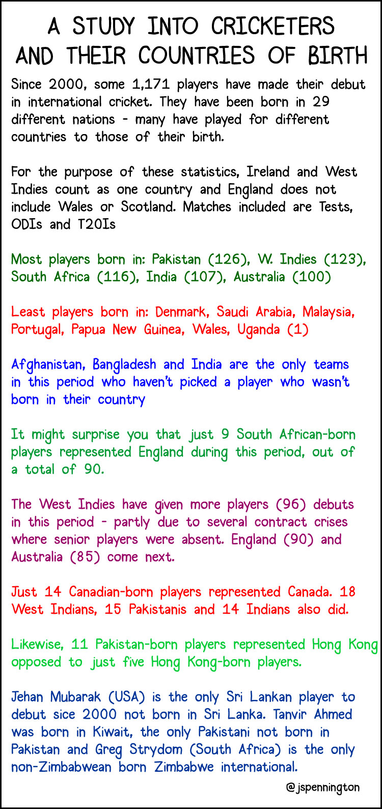 Anyway, I’ve looked into where all international cricketers making their debuts since 2000 were born and here we go:
